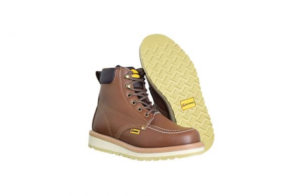 Keep your feet protected with this traditional work boots made in cowhide leather in cinnamon color, with a high density polyurethane sole for cushion and grip, Leather upper, oil and slip-resistant, soft and comfortable polyurethane insole, and made with internal steel toe for impact protection.